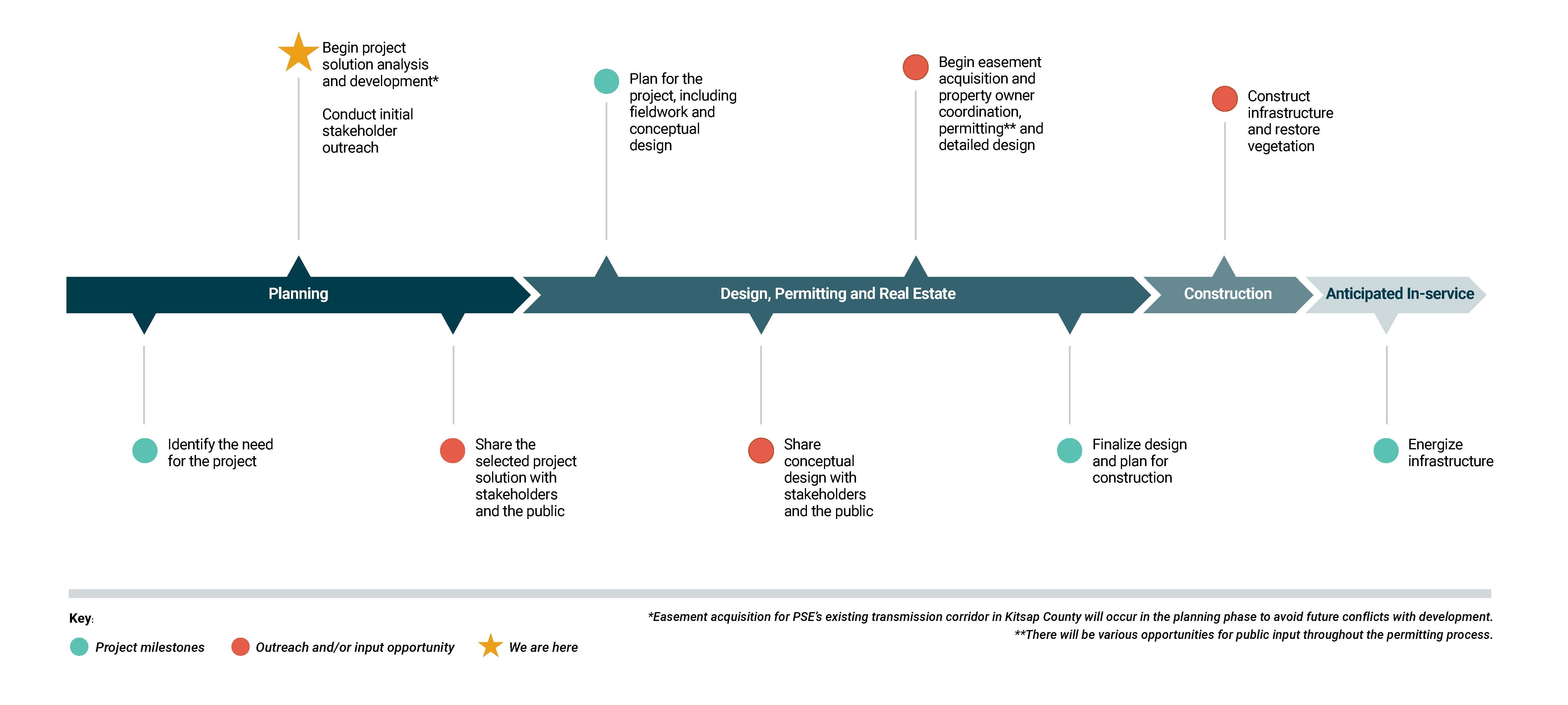 PSE is currently in the process of developing and evaluating long-term solutions for the West Sound's power needs. Once we determine the project solution, we'll be able to share a more detailed timeline. We will continue to update the community as this process progresses.